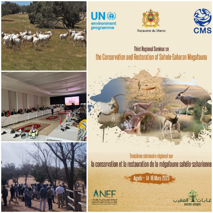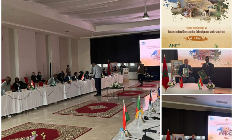 – إطلاق مبادرة جهوية للحفاظ على الحيوانات ذات الحجم الكبيرفي الساحل والصحراء، علما بأن البلدان المشاركة قد فوضت المغرب للترافع لمناصرة هذه المبادرة على مستوى الدورة الرابعة عشر لاتفاقيةالأمم المتحدة حول المحافظة على الأنواع المهاجرة من الحيوانات المتوحشة (CMS) والمقرر انعقادها في الفترة الممتدة من 23 إلى 28 أكتوبر 2023 بأوزبكستان، وكذلك على مستوى المنظمات الدولية