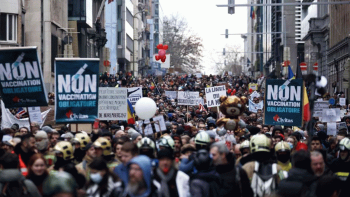 الآلاف يتظاهرون ضد الشهادة الصحية في بروكسل