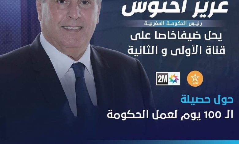 يتحدث عزيز أخنوش رئيس الحكومة يوم الاربعاء 19 يناير الجاري الى وسائل الاعلام العمومية عبر القناة الاولى والقناة الثانية لتقديم حصيلة 100 يوم من عمل الحكومة