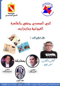 يحتفي منتدى الابداع والمواطنة بشراكة مع مقاطعة الحي المحمدي، بمجموعة ناس الغيوان ومجوعة ازنزارن الشامخ يوم السبت 19 فبراير 2022 على الساعة الخامسة مساءا، تحت شعار: “الحي المحمدي يحتفي بالظاهرة الغيوانية وتازنزارت” ، وذلك بتنظيم حفل توقيع إصدارات الكاتب سعيد محافظ وهي كتاب :” عندما حلقت في سماء ناس الغيوان ” وهو في جزأين ، وكتاب ” ازنزارن الشامخ” الصادر حديثا .