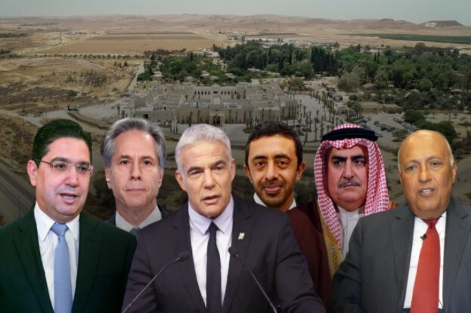 التقى الوزراء في منتجع سديه بوكر في النقب، وأدلى كل من وزراء خارجية الولايات المتحدة ومصر والإمارات والبحرين والمغرب بتصريحات لوسائل الإعلام.