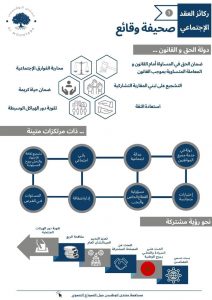 وارتكزت صحيفة الوقائع على ثلاثة أبواب أو المرتكزات كل منهما تتضمن جملة من العقود الاجتماعية ، أولى هذه العقود تلك المتعلقة “بدولة الحق والقانون ” والتي ترتكز بدورها على ضمان الحق في المساواة أمام القانون والمعاملة المتساوية بموجب القانون ، ومحاربة الفوارق الاجتماعي ، والتشجيع على تبني المقاربة التشاركية ، وضمان الحياة الكريمة ، واستعادة الثقة ثم تقوية دور الهياكل الوسيطة .