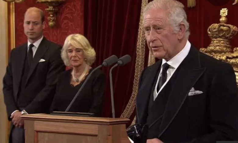صباح السبت يجتمع “مجلس الجلوس على العرش” وهو مجموعة من الوجهاء من العائلة الملكية وشخصيات سياسية ودينية بينهم زوجة الملك كاميلا ونجله وليام ورئيسة الوزراء ليز تراس ورئيس أساقفة كانتنبري في قصر سانت جيمس لاعلان تشارلز ملكا بصفة رسمية. وستنقل هذه المراسم في بث تلفزيوني مباشر للمرة الأولى. وسيتلى الاعلان من على شرفة القصر ومن ثم في اسكتلندا وإيرلندا الشمالية وويلز.