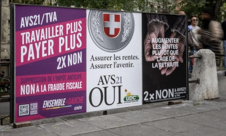 عبر السويسريون في استفتاء اليوم الأحد عن دعمهم لمشروع رفع سن التقاعد لدى النساء من 64 إلى 65 عاما، وذلك بنسبة 50,6 %.