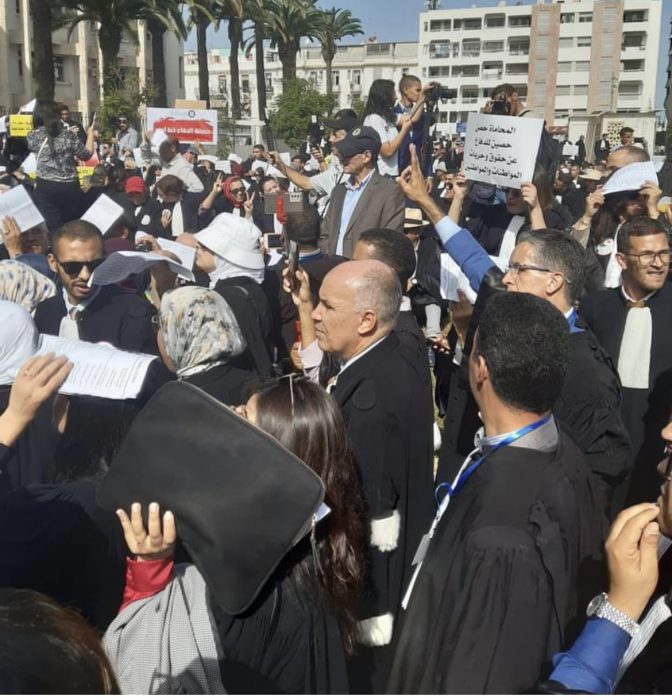 اهتزت جنبات وزراة العدل بالرباط اليوم الجمعية 21 أكتوبر على أصوات المحامين والمحاميات في الوقفة الاحتجاجية المنظمة ضد مسودة وزير العدل المسربة الخاصة بالقانون المنظم لمهنة المحاماة بمشاركة العديد من الهيئات والجمعيات المهنية .