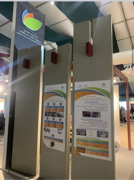 وتشارك الوكالة  في هذا المعرض برواق داخل القطب المؤسساتي لوزارة الفلاحة، تعرض فيه أهم البرامج والمشاريع المخصصة لمناطق الواحات في إطار استراتيجية الجيل الأخضر، كالفلاحة التضامنية والتجميع الفلاحي من الجيل الجديد، وريادة الأعمال لفائدة الشباب وتعزيز التكيف ومقاومة التغير المناخي، وكذا مواكبة التعاونيات والمجموعات ذات النفع الاقتصادي في تسويق التمور.