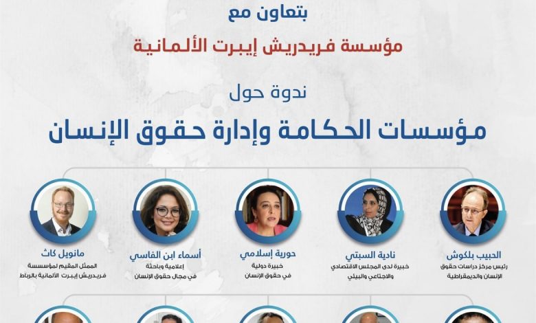 ينظم مركز دراسات حقوق الإنسان والديمقراطية بتعاون مع مؤسسة فريديرتش ايبرت الألمانية يوم السبت 26 نوفمبر 2022 بالرباط ندوة حول موضوع ” مؤسسات الحكامة وإدارة حقوق الإنسان”، بمشاركة نخبة من الأساتذة والخبراء.