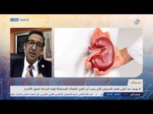و العمر المحدد الذي يفضل ألاّ يخضع المريض فيه لزراعة الكلى؟ ثم الاجراءات والفحوصات اللازمة التي يتم على أساسها تحديد ما إذا كانت الكلية مناسبة للمريض و المدة التي يتعين على المريض انتظارها قبل الحصول على الكلية؟ والاختلافات بين الكلى المُتبرَّع بها من أشخاص ذوي قلب نابض والكلى المُتبرَّع بها من ذوي قلب غير نابض؟ خاتما أجوبته بالحديث عن مرضى الكلي وفيروس كورونا وما يجب ان يتم اتخاذه من احتياطات