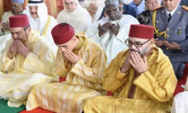 أدى أمير المؤمنين صاحب الجلالة الملك محمد السادس،، مرفوقا ب ولي العهد الأمير مولاي الحسن، و الأمير مولاي رشيد، و الأمير مولاي أحمد الأمير مولاي اسماعيل، اليوم السبت، صلاة عيد الفطر بالمسجد المحمدي بالدار البيضاء، وتقبل جلالته التهاني بهذه المناسبة السعيدة.