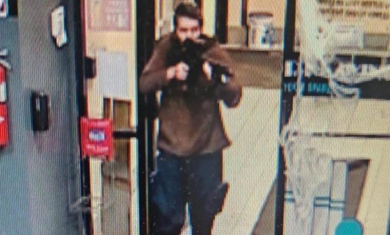 وأرفقت الشرطة منشورها بصورة للمشتبه به ظهر فيها رجل أبيض مسلحا ببندقية نصف آلية داخل صالة للبولينغ.