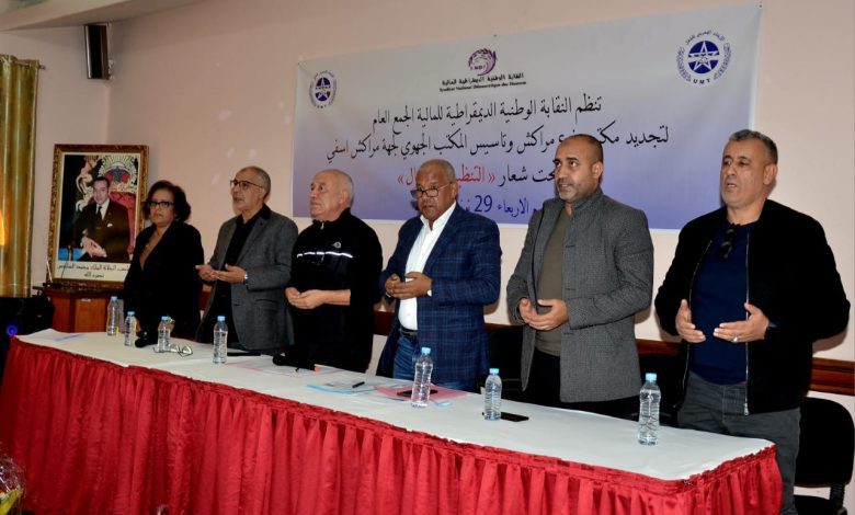 تحت إشراف المكتب الوطني للنقابة الوطنية الديمقراطيةللمالية العضو في الاتحاد المغربي للشغل–UMT–،انعقدالجمع العام لموظفات و موظفي قطاع الاقتصاد و المالية بإقليممراكش تحت شعار ” التنظيم و النضال ” يوم الأربعاء 29 نونبر 2023 بنادي الضمان الاجتماعي بمدينة مراكشبحضور ممثلي فروع أسفي، الصويرة، قلعة السراغنة، أكادير،كلميم، الدارالبيضاء و الرباط و ذلك من أجل تجديد المكتبالإقليمي لفرع مراكش و إحداث المكتب الجهوي لجهة مراكش–تانسيفت–الحوز.