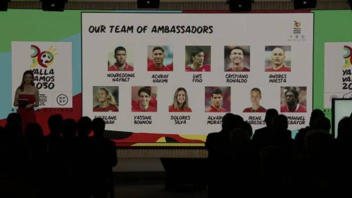 وتميز حفل الإعلان عن الشعار الرسمي الخاص بملف الترشح المشترك بين المغرب وإسبانيا والبرتغال لاستضافة بطولة كأس العالم 2030، الذي يحمل عبارة “يالا فاموس 2030″، أيضا بتقديم الركائز والشعار اللفظي الخاصين بالملف الثلاثي، إلى جانب الموقع الإلكتروني والفيديو الرسمي وصفحات التواصل الاجتماعي.