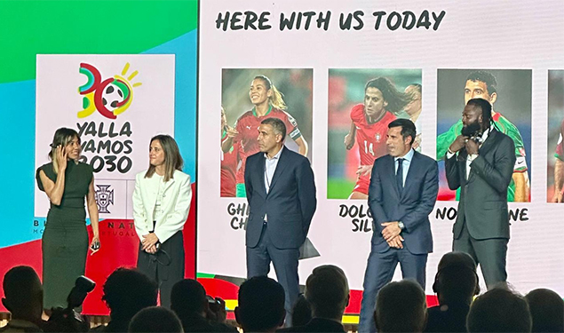 تم اليوم أمس الثلاثاء بلشبونة، تقديم “سفراء” الملف المشترك بين المغرب والبرتغال وإسبانيا لاستضافة كأس العالم 2030، وذلك خلال حفل الإعلان عن الشعار الرسمي الخاص بملف الترشح الثلاثي لاستضافة بطولة كأس العالم 2030.