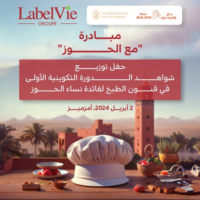 ففي 2 أبريل 2024، احتفلت مجموعة LabelVie بمطعم دار باجدي بإتمام هذه الدورة التدريبية في مجال الطهي ، حيث شهد الحفل تسليم شهادات التدريب حضور ممثلي مجموعة لابيل فيLabelVie، الأكاديمية المغربية لفنون الطهي، الشريك البيداغوجي للتدريب، وعائلات الفائزات.