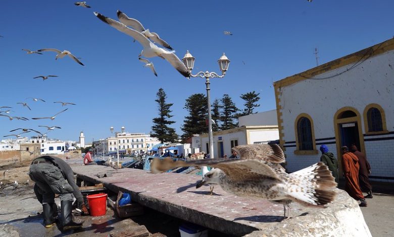 طيور النورس ترسم لوحة فنية بديعة في سماء الصويرة