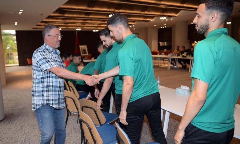 استقبل رئيس الجامعة الملكية المغربية لكرة القدم، فوزي لقجع، الأربعاء بسلا، أعضاء بعثة المنتخب الوطني لكرة القدم داخل القاعة، التي ستتوجه الأحد المقبل إلى أوزبكستان للمشاركة في نهائيات كأس العالم.