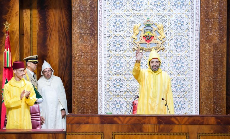 وبهذه المناسبة، سيلقي جلالة الملك أعزه الله خطابا ساميا أمام أعضاء مجلسي البرلمان: مجلس النواب ومجلس المستشارين، وسيبث مباشرة على أمواج الإذاعة وشاشة التلفزة ابتداء من الساعة الرابعة و40 دقيقة من عصر يوم الجمعة”.