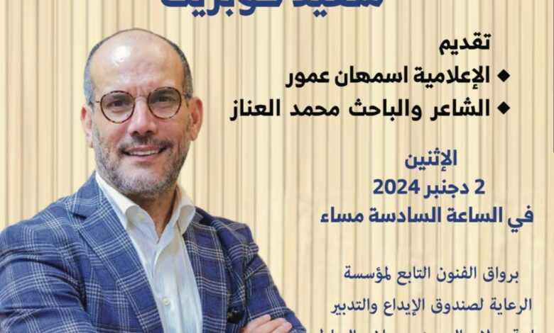 في إطار برنامجهما المشترك الذي يستهدفُ تشبيكَالعلاقات بين العرض البصري والشّعري والفني، ينظّم بيت الشعر في المغرب ومؤسسة الرعاية لصندوق الإيداع والتدبير أمسية الشاعر المغربي سعيد كوبريت وذلك يوم الإثنين 2 دجنبر 2024 في الساعة السّادسة مساء برواق الفنون التّابع لمؤسسة الرعاية لصندوق الإيداع والتدبير الكائن بساحة مولاي الحسن، حسان- الرباط.