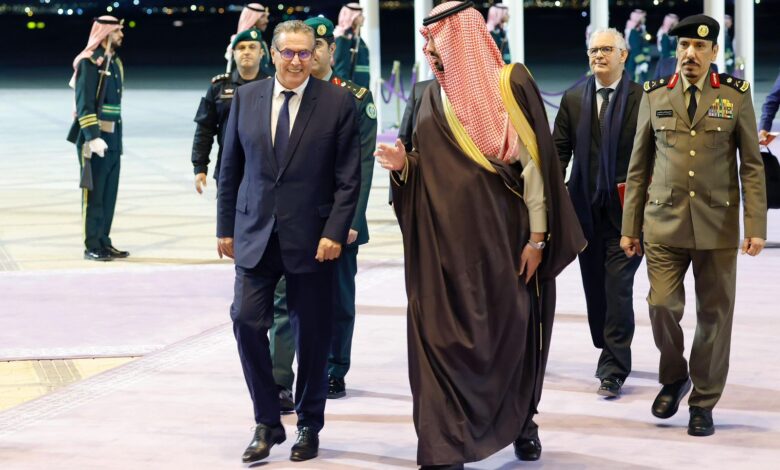 وكان عزيز أخنوش قد وصل إلى الرياض مساء أمس الاثنين، مرفوقا بوزير التجهيز والماء نزار بركة للمشاركة في قمة المياه الواحدة. ووجد في استقباله في مطار الملك خالد الدولي، الأمير فيصل بن عبدالعزيز بن عياف أمين منطقة الرياض.