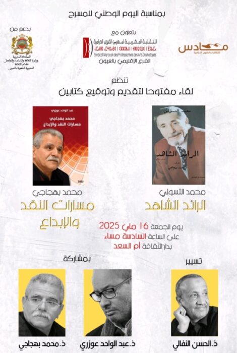 تحت شعار “بمناسبة اليوم الوطني للمسح”، وبالتعاون مع وزارة التعاون والبناء، يُنظَّم لقاء ثقافي مفتوح لتقديم وتوقيع كتالوج إبداعي بعنوان “مسارات النقد والإبداع”. الحدث سيقام يوم الجمعة الموافق 16 ماي 2025 على الساعة السادسة مساءً بدار الثقافة أم السعد.