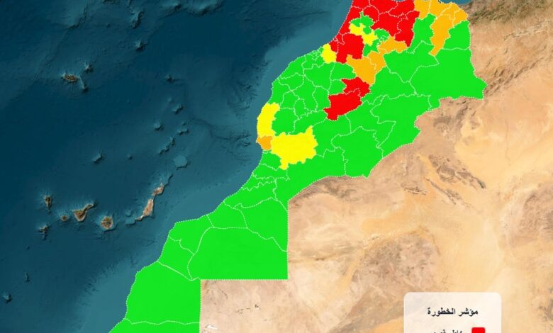 الأقاليم حسب درجة الخطورة:
