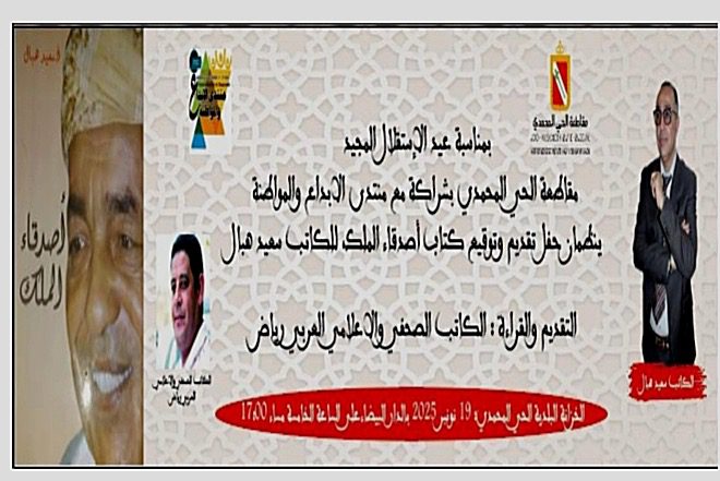 في إطار الاحتفالات بذكرى عيد الاستقلال، ينظم منتدى الإبداع والمواطنة، بشراكة مع مقاطعة الحي المحمدي بالدار البيضاء، حفل تقديم وتوقيع كتاب “أصدقاء الملك” للكاتب والدكتور سعيد هبال.