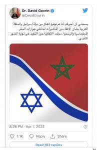 وقال غوفرين تدوينة عبر حسابه الشخصي بموقع التواصل الاجتماعي “تويتر”،يسعدني أن أخبركم أنه تم توقيع اتفاق بين دولة إسرائيل والمملكة المغربية بشأن الإعفاء من التأشيرات لحاملي جوازات