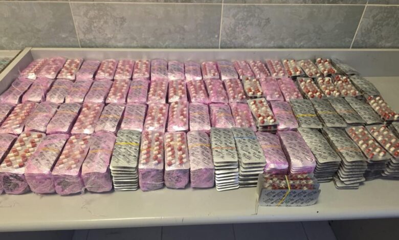 ومواصلة لإجراءات التفتيش، تم العثور بهيكل هذه السيارة الداخلي على شحنة إضافية تبلغ 11 ألف و634 قرصا طبيا مخدراً، ليصل مجموع المحجوزات من المؤثرات العقلية 17 ألفا و458 قرصا طبيا مخدراً.